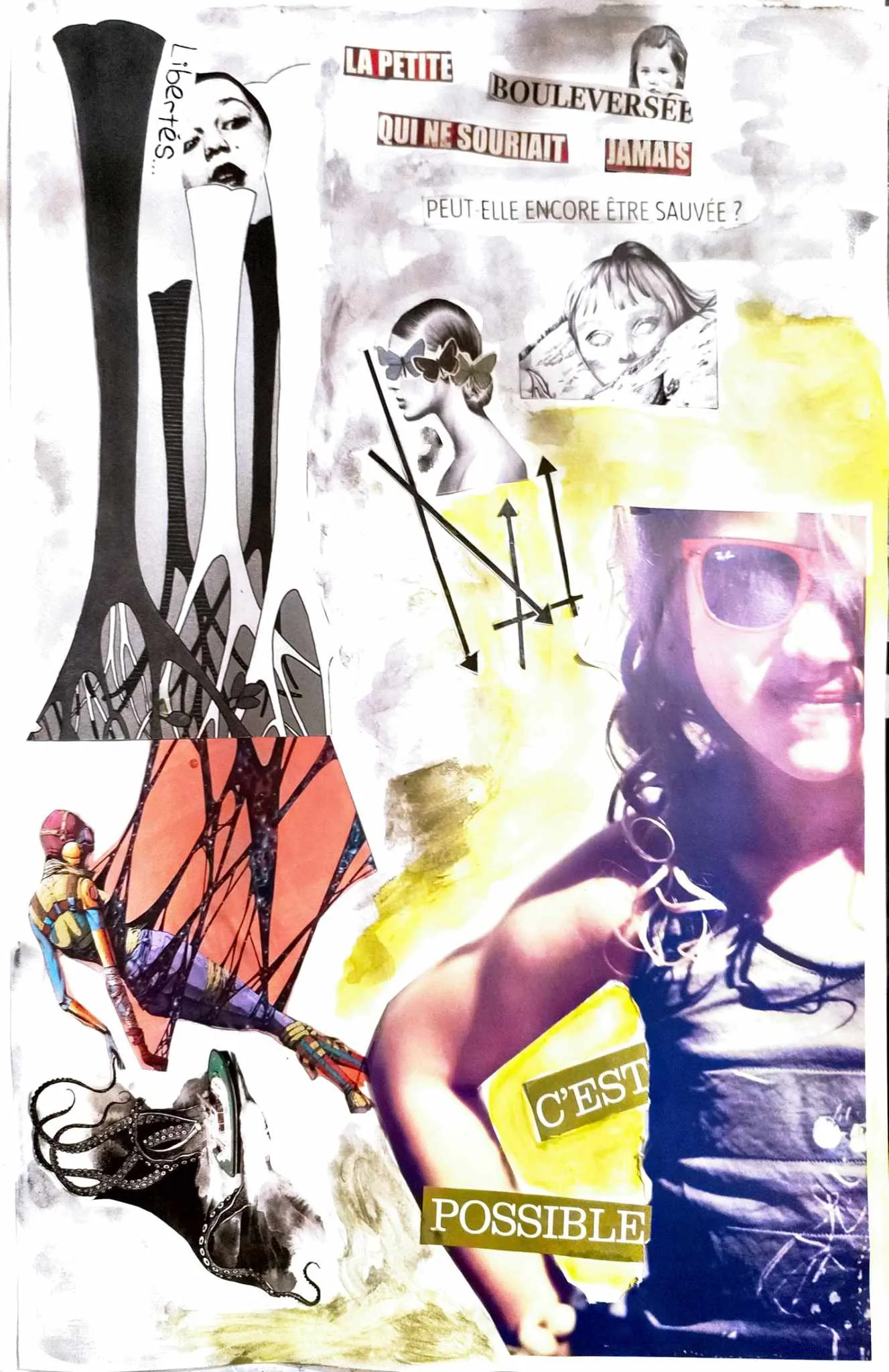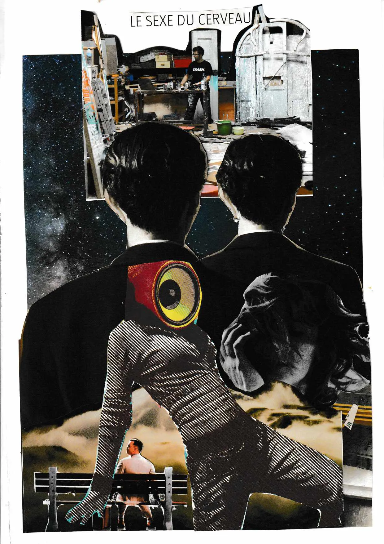 Les collages d’Amandine Bazin expriment une profonde compréhension des complexités de l’existence, où les émotions, les souvenirs, et les rêves s’entremêlent de manière non linéaire. Son approche artistique reflète la philosophie selon laquelle la vie ne file pas droit: elle est une palette de couleurs qui déborde et s’exprime au-delà des limites conventionnelles.