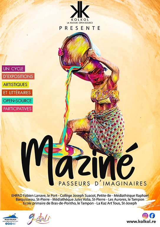 “Maziné”, un mot riche de sens, signifie à la fois “imagination” et “penser à” en créole. Cette exposition explore les thèmes de l’imaginaire et de la pensée profonde, de la connexion entre l’esprit humain et les réalités visibles et invisibles. Les œuvres sélectionnées utilisent diverses styles artistiques pour plonger le spectateur dans les dimensions de l’inconscient, du rêve collectif, et des visions qui échappent à la simple perception