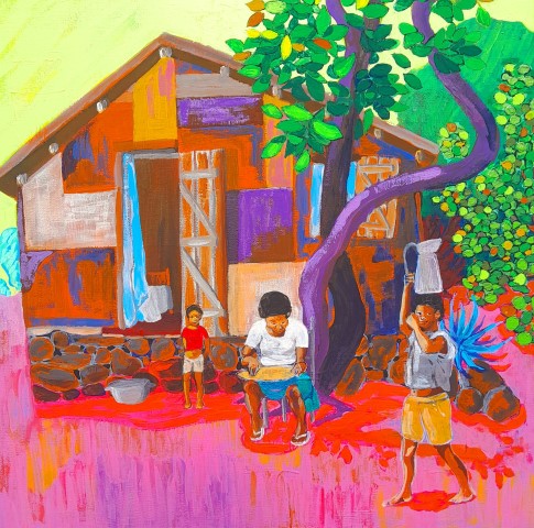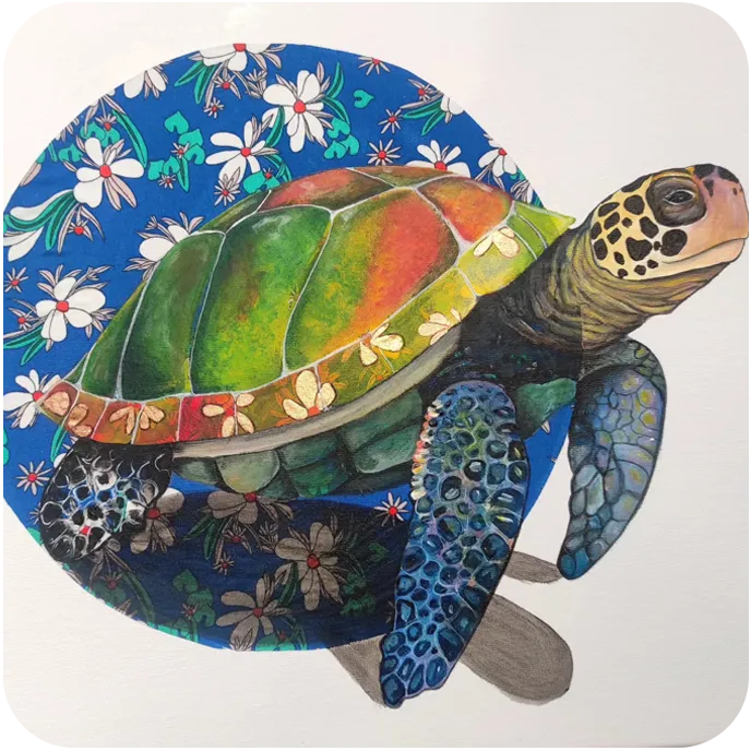 Le pouvoir des fleurs ! Artiste peintre et dessinatrice, qui s’aventure jusque sur les murs. Les richesses de la flore locale l’inspire, et l’écologie reste au coeur de ses préoccupations artistiques !