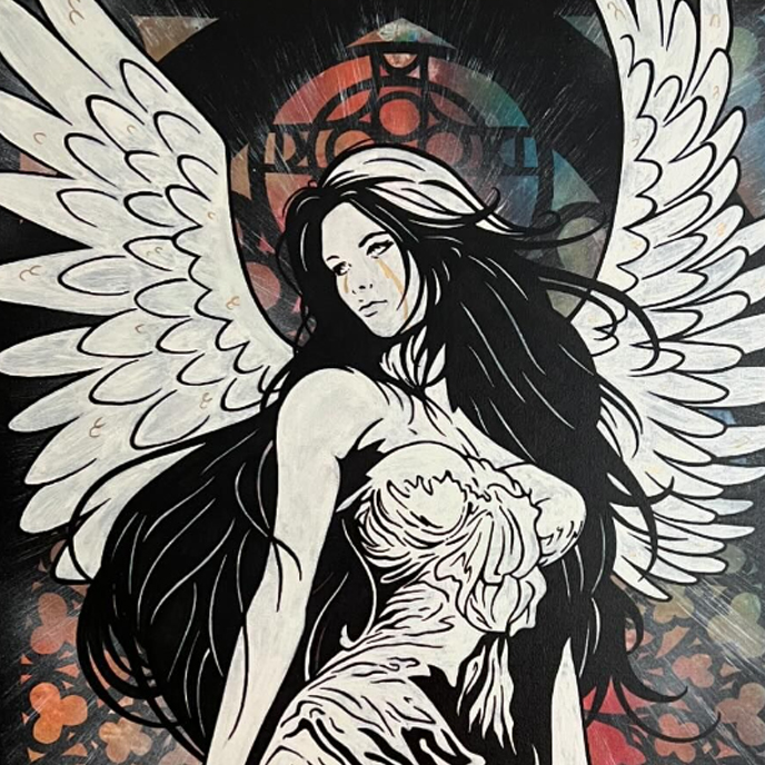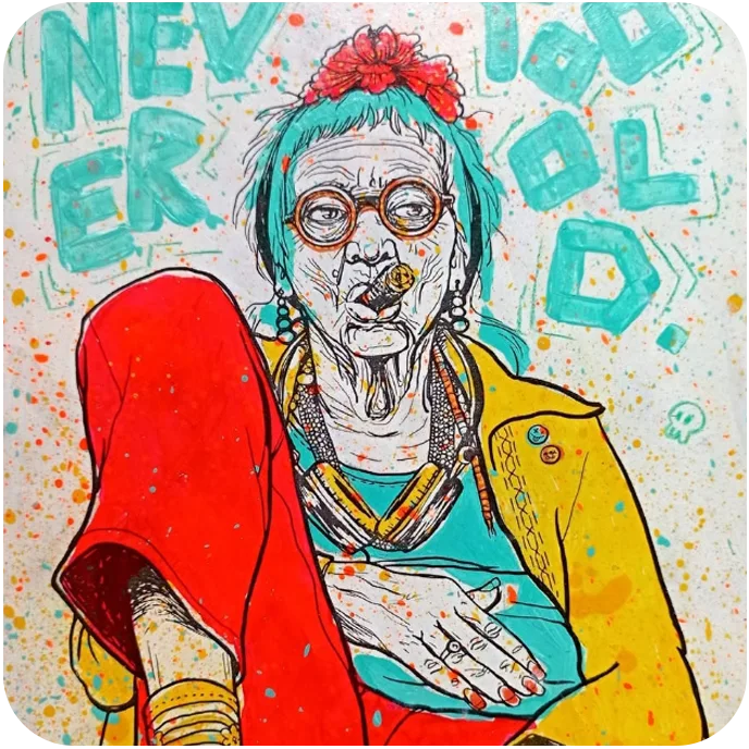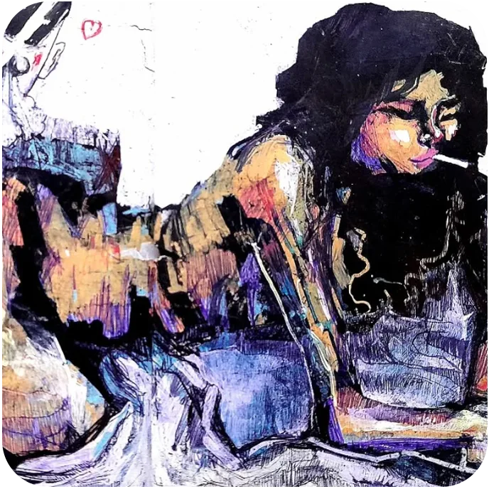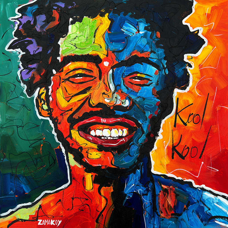 De la bombe ! Mais ce qui explose ce sont ses couleurs ! Graffeur et illustrateur, il nous offre des portraits aux émotions éclatantes, aux couleurs vives, s’amusant parfois à la caricature.