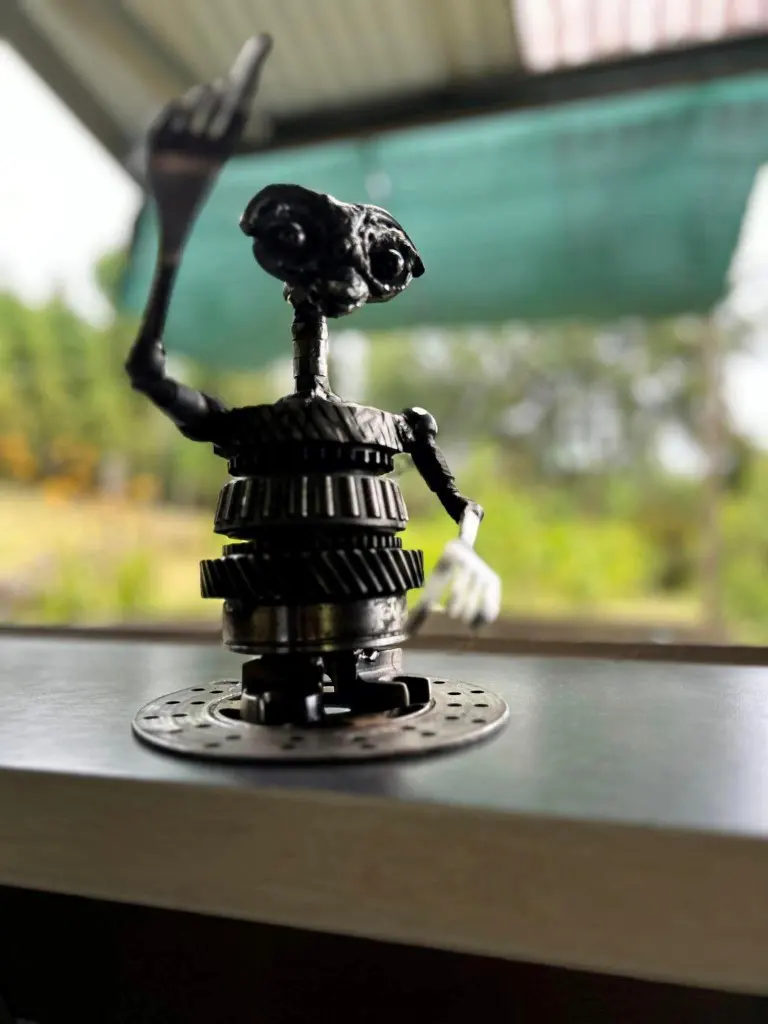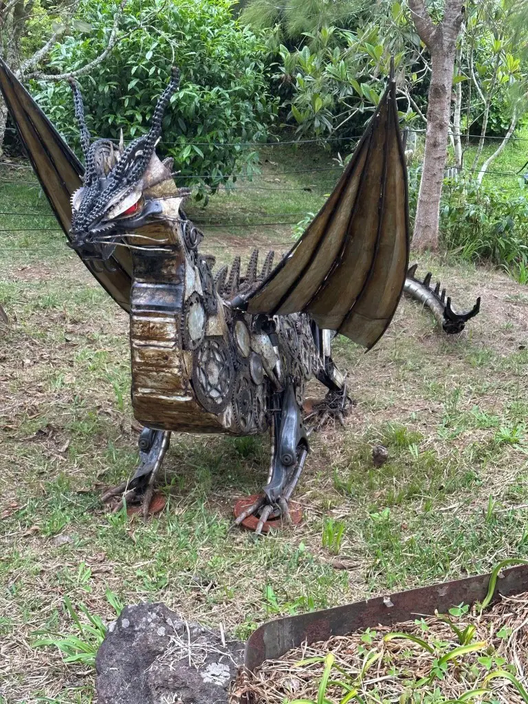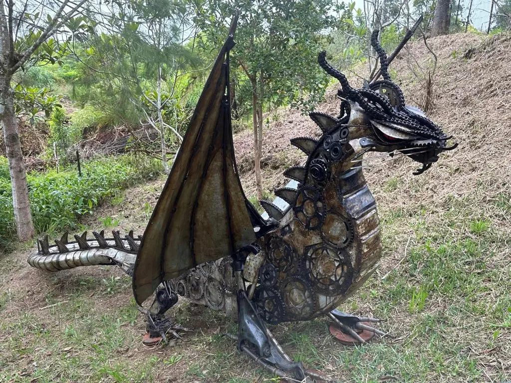Le maître de ces lieux, Sandro K’BIDI le dit lui-même, il « transforme l’invisible en réel ». Cet habitant de Grand Coude est habité par sa passion, la sculpture. Avec ses explications, la visite de son jardin nous transporte dans un film grandeur nature. A travers son art, Sandro sensibilise également les plus jeunes sur l’utilité de ces insectes et de ces animaux dans l’écosystème.”