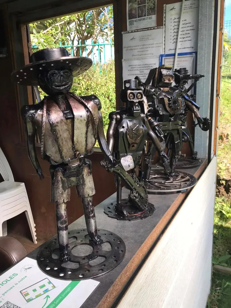 “En visitant le jardin des bestioles à Grand Coude dans les Hauts de Saint-Joseph, tout ce qui est habituellement petit devient gigantesque ! Des fourmis, des mantes religieuses, des mille-pattes, des pinces-oreilles, toutes ces petites bêtes se rendent visibles à l’œil nu. De la magie ? Juste du talent.